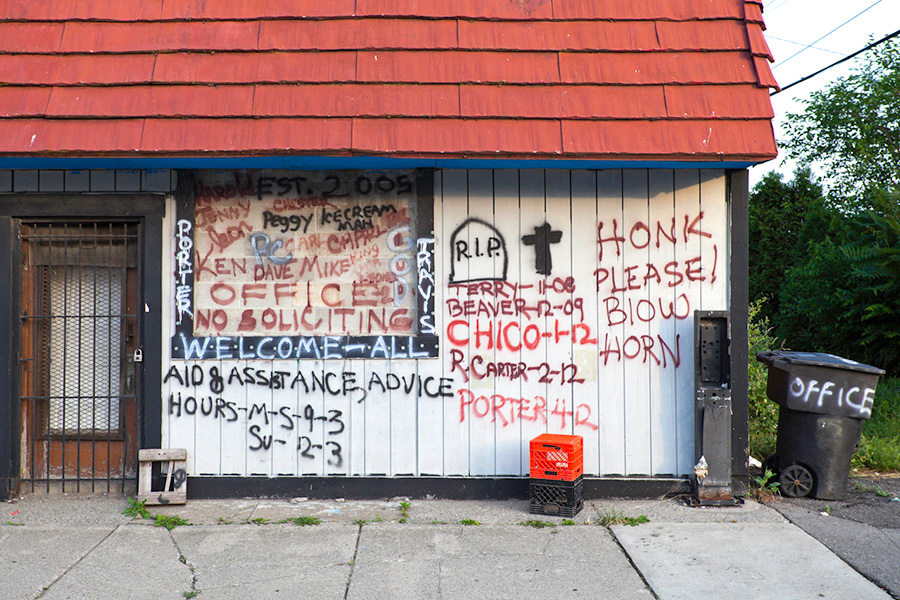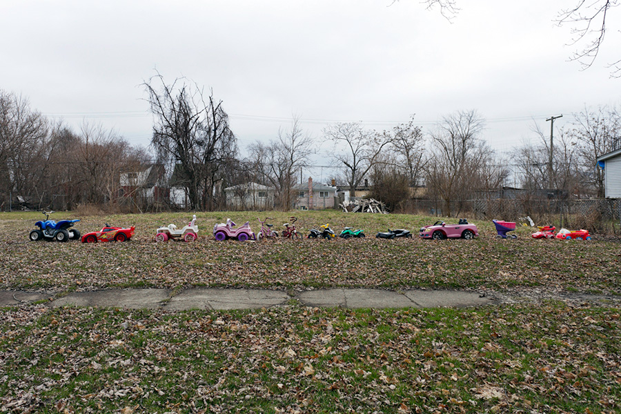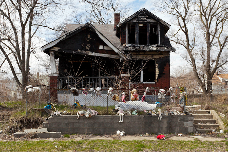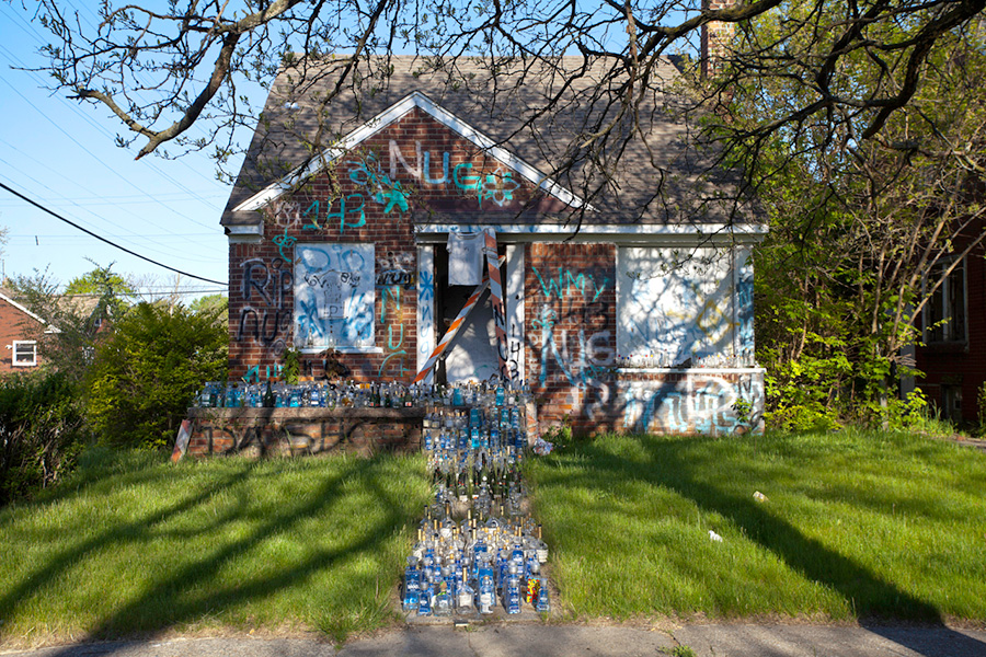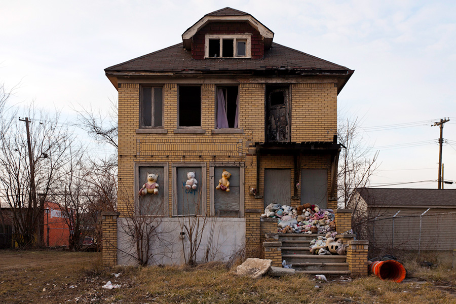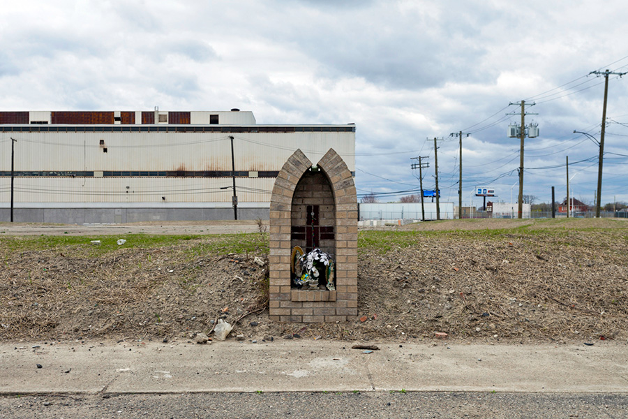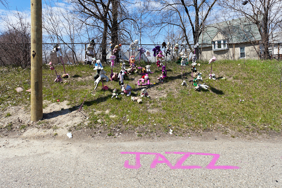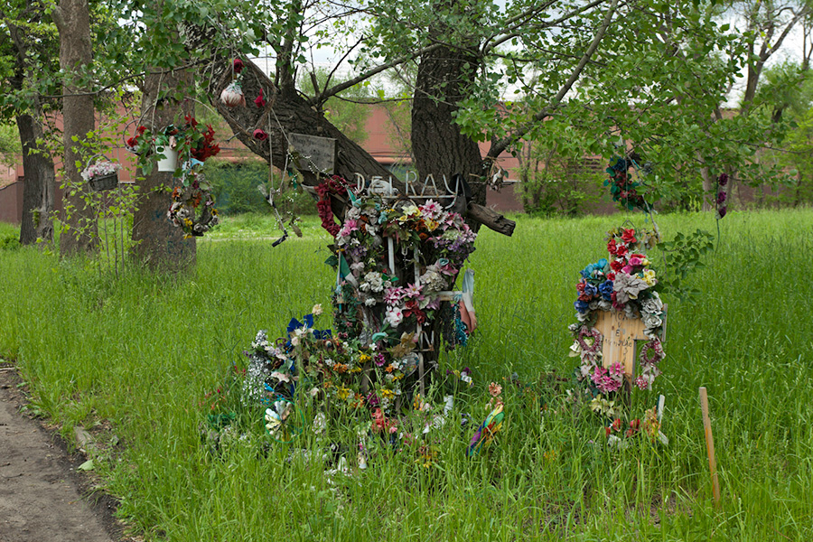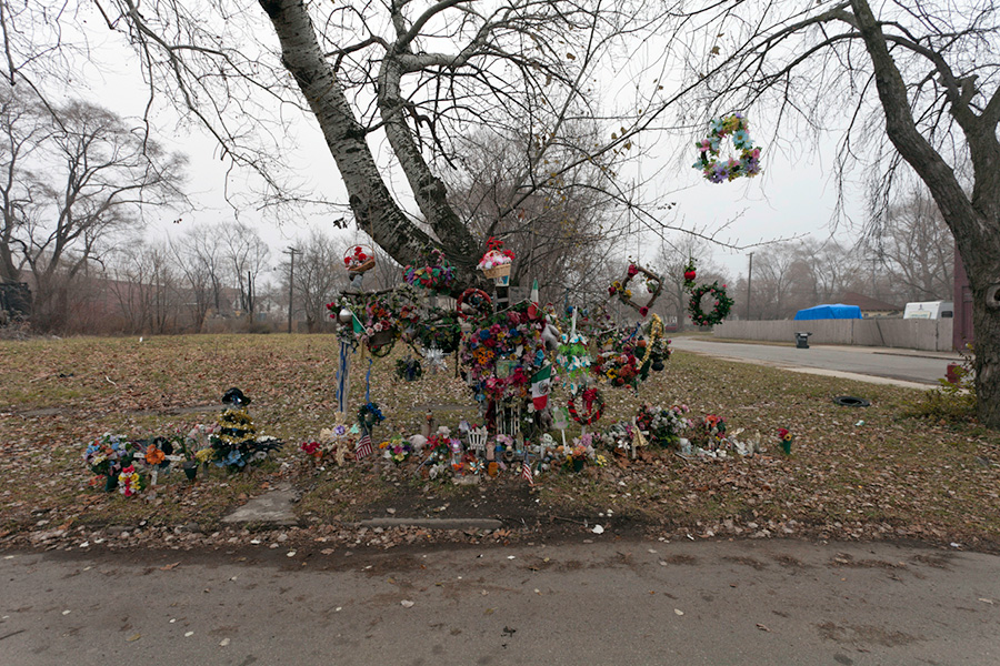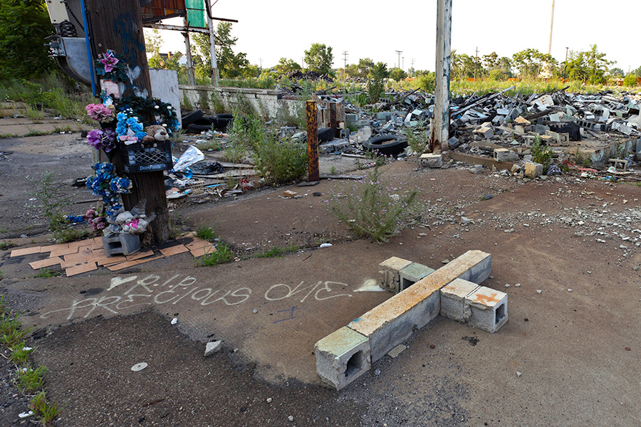 MEMORIALS is an ongoing photo series documenting the unique custom of leaving objects to commemorate where loved ones died or were killed throughout Detroit. Often memorialized through stuffed animals, t-shirts, religious iconography, and liquor bottles drank in their honor, these memorials appear on trees, houses, and utility poles across the city - and like many things in Detroit, weather away over time. |