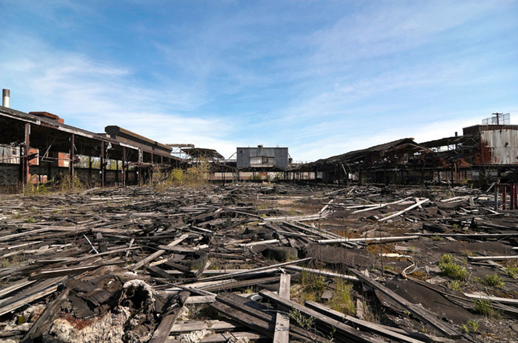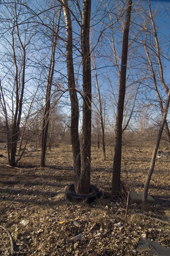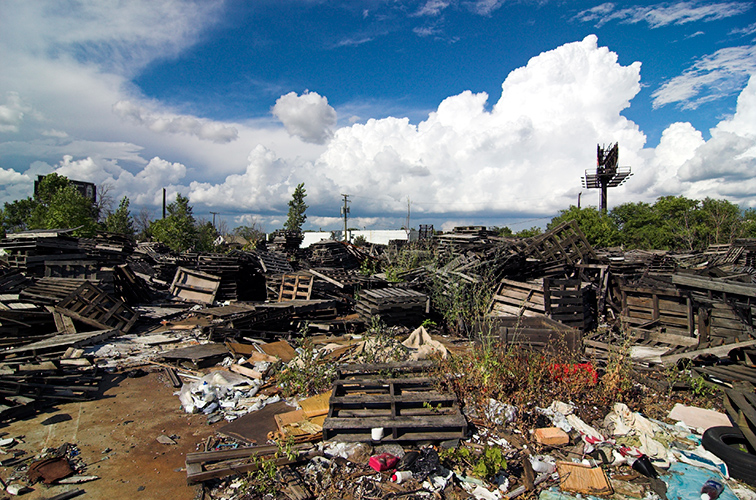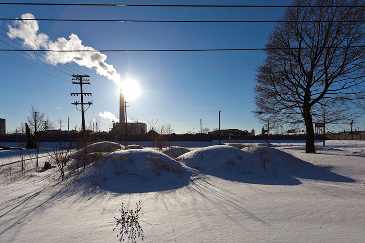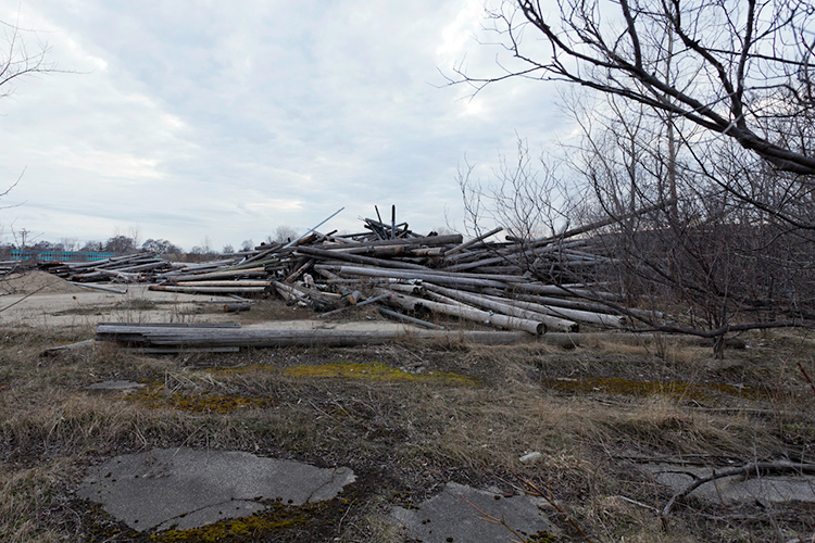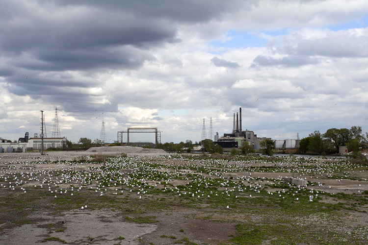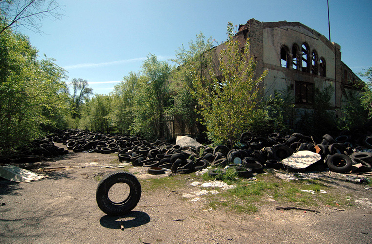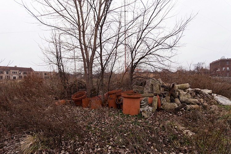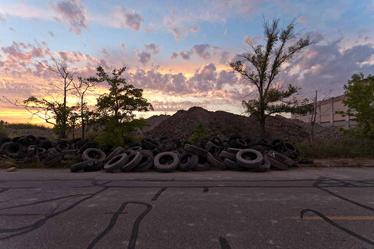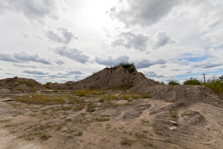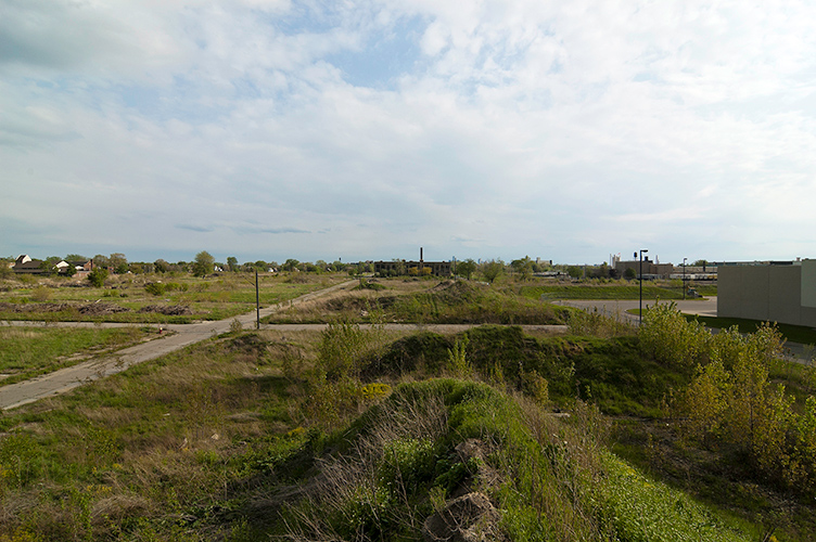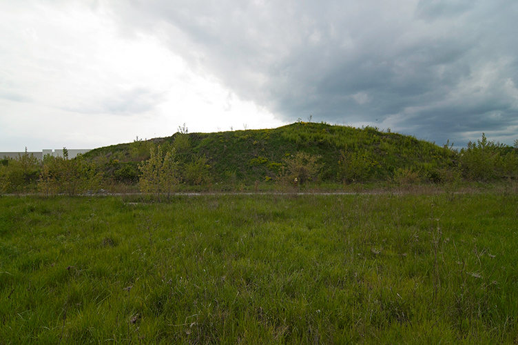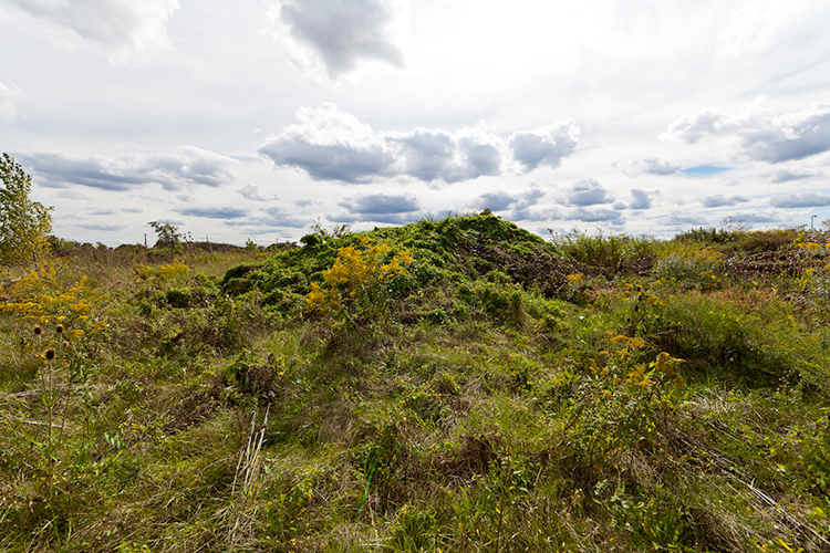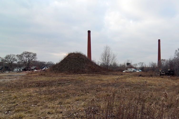 THE MOUND PROJECT is a photography series and mixed-media project focused on present day sites where ancient Native burial mounds and earthworks once stood. In Detroit, where one lone mound remains, hundreds were ransacked and leveled by pothunters, grave robbers, farmers, and developers. In their places now sit neighborhoods, factories, brownfields, and blight-ridden streets, and evidence of this ancient past is largely non-existent. Along with former sites, contemporary “mounds” are chronicled, specifically the waste and debris mounds left behind by careless developers and illegal dumpers. In a criticism of the way so much sacred, ancient history was unceremoniously destroyed, only to be replaced with exponential amounts of industrial waste, pollution, and mountainous landfills, the Mound Project seeks to illuminate this hidden history, while critiquing the many layers of failed industrial progress and destruction left in its wake.