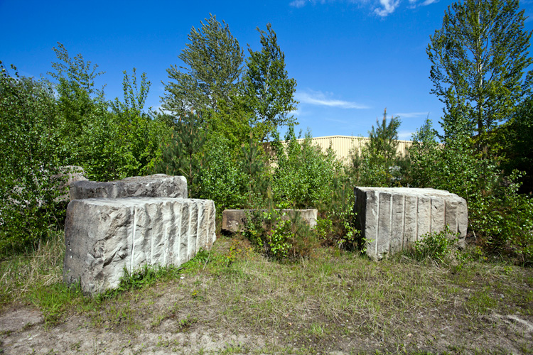 THE QUARRY / STEINBRUCH is a site-specific installation and photo project created in and around the German auto city of Wolfsburg. Based on the history of Wolfsburg castle, local legends, ancient cairns, various mythologies, and Andre Norton's Iron Cage, the installation was built within the now abandoned sandstone quarries of Velpke, a Stone City that once supplied the same rock used at Schloss Wolfsburg. The photo series was created over the course of 1 week, artifacts from various sites were collected, and the sculpture was left to be destroyed, which it was, 2 months later. |