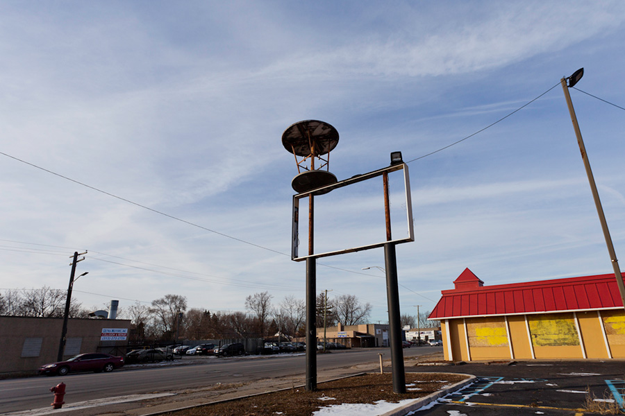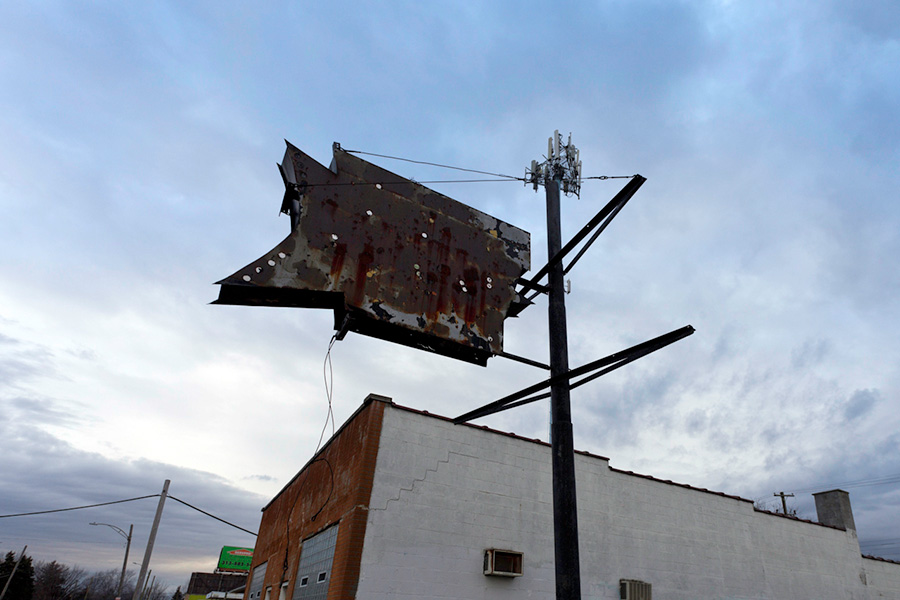 SIGNS will be a site-specific project installed throughout Detroit. Utilizing the metal armatures of former business signage, new vacuum formed plastic advertisement signs will be created and installed in all corners of the city. Inspired by the history of each building, neighborhood, and the history of each site, as well as various artworks and symbology that connects to these locations, the works will be installed and documented as they disappear as well.