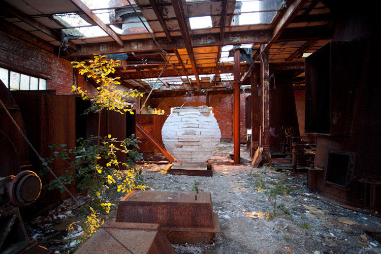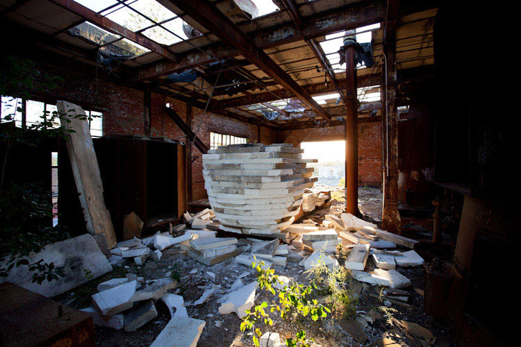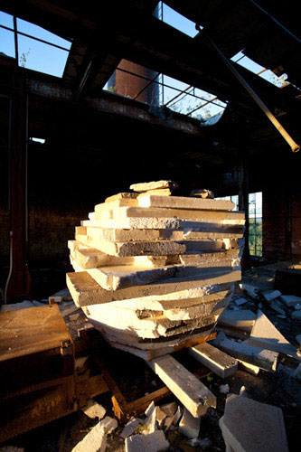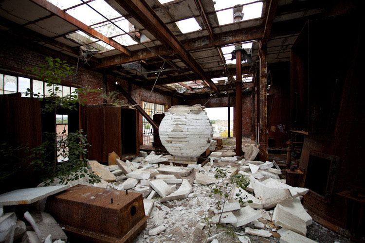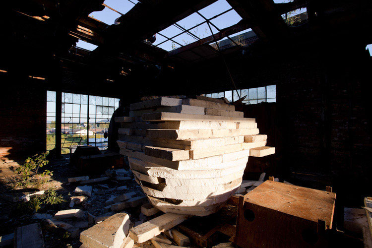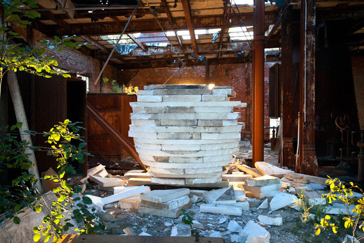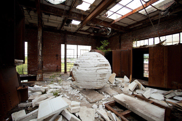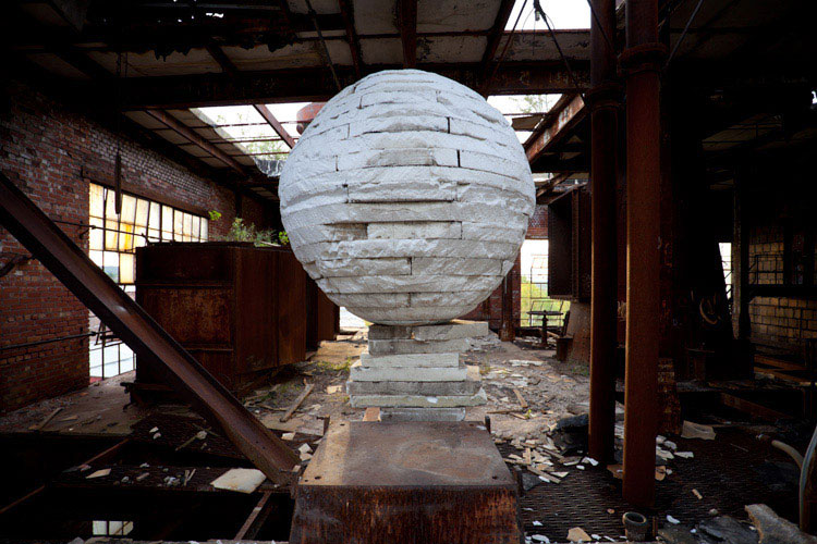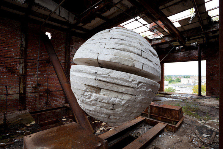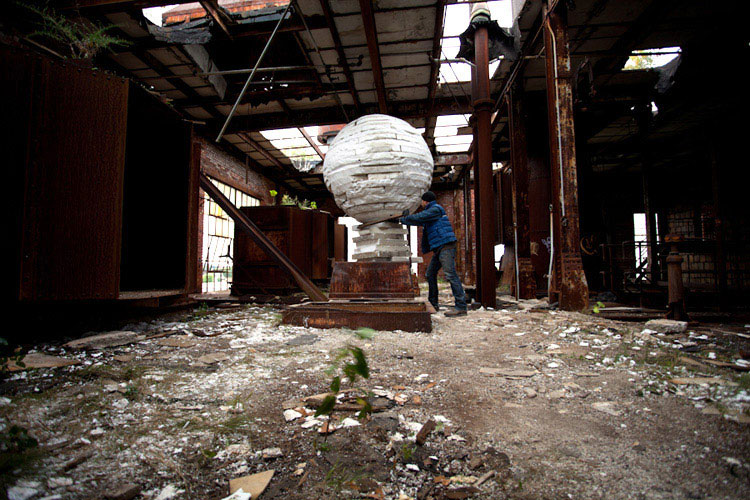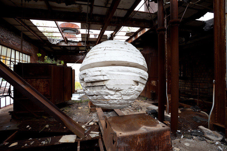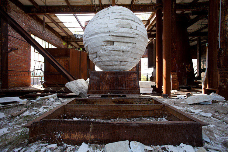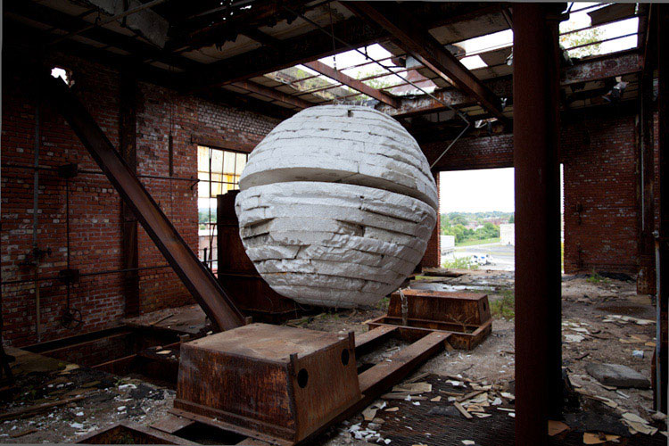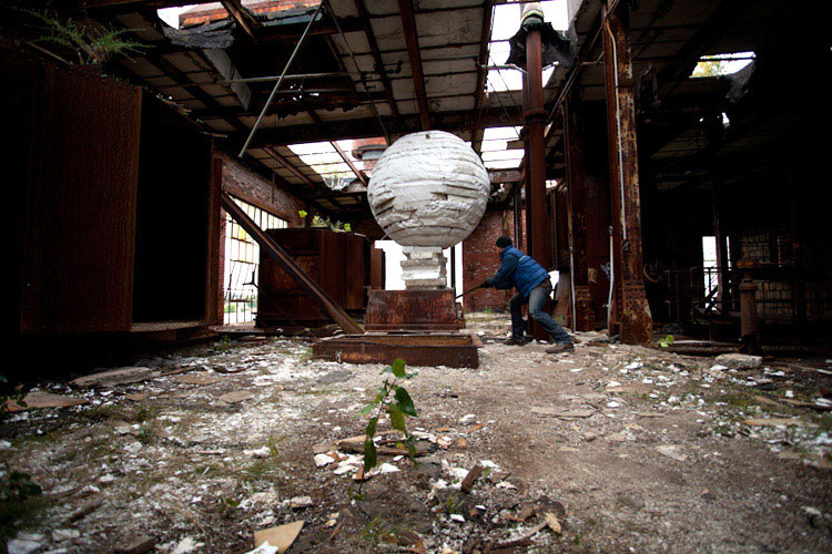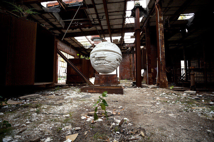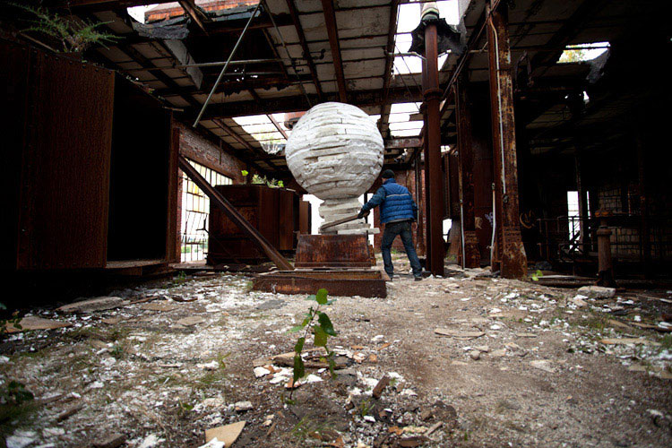 Sisyphus is doomed to BeaUtica for eternity, where he hauls polystyrene foam up 60 feet to the catwalks of an ancient powerhouse, builds the stone of rejection, hones the egg of rejection, carves the sphere of rejection, and hatches the Voice of Space. After a brief conversation, Sisyphus attempts his escape, the aged Voice of Space surveys what has become of BeaUtica, laments the bucolic days of yore, and commits suicide by rolling off the edge 60 feet to the earth. Alas, Sisyphus is forced to return and repeat the task. Forever.