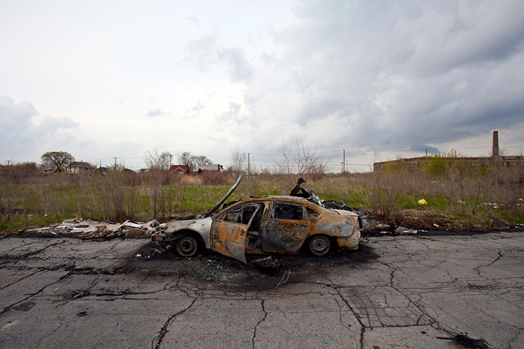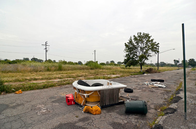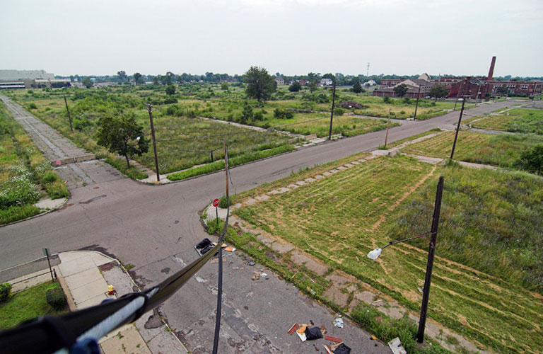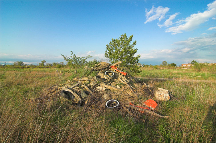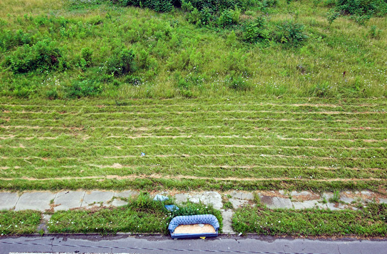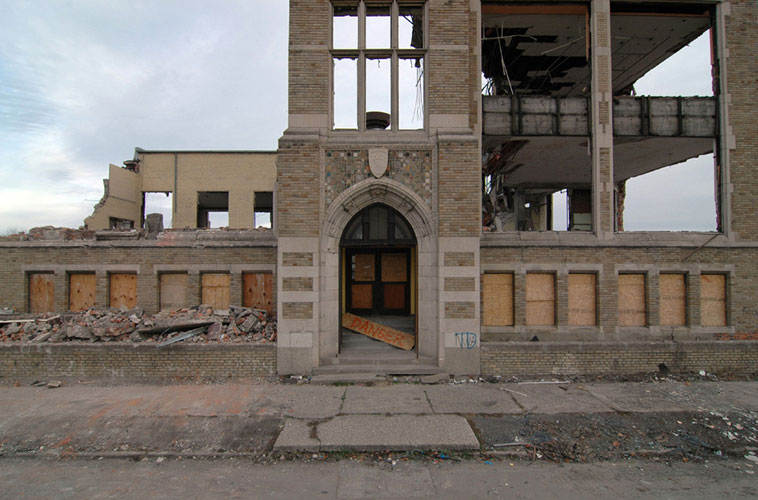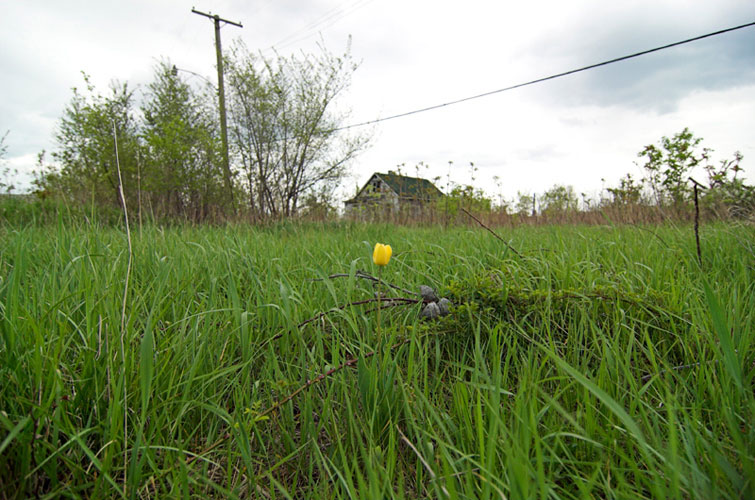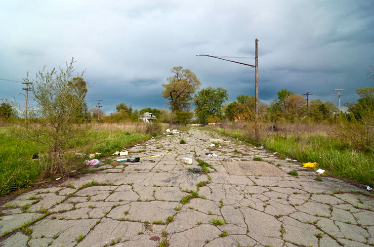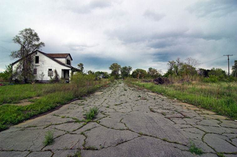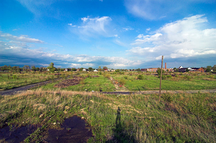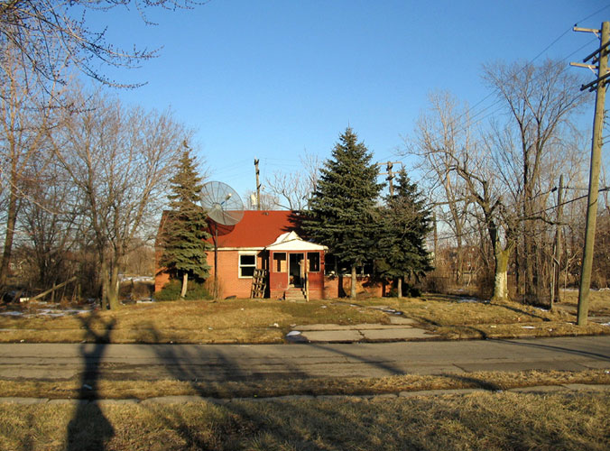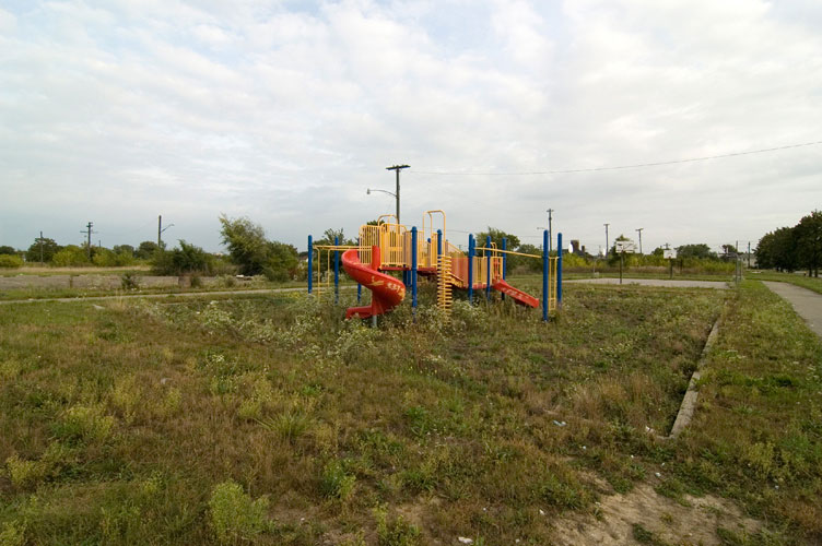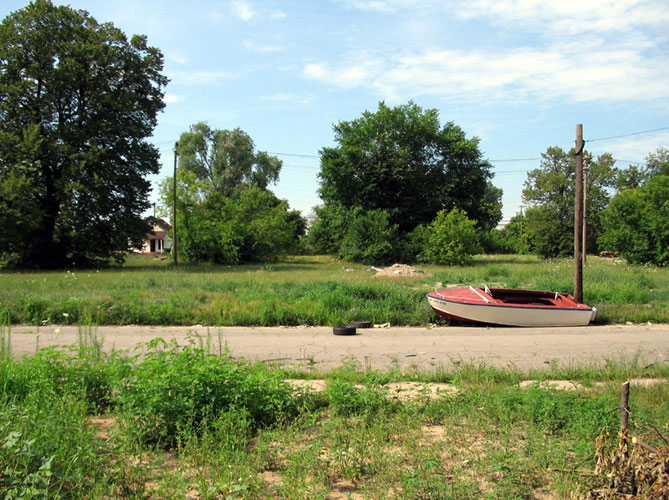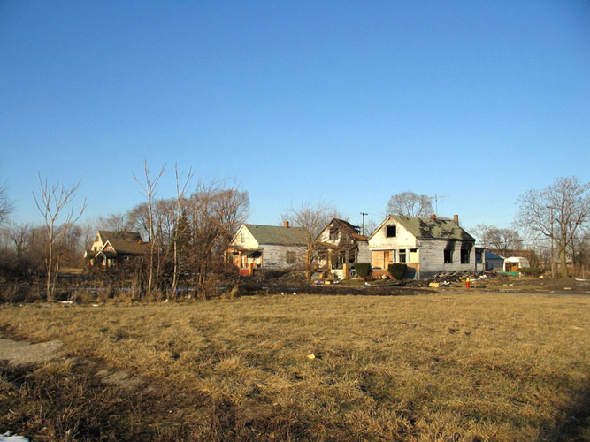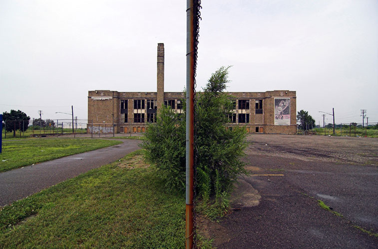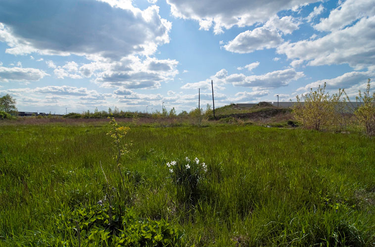 THE ZONE - Since the late 1990s, I've watched this neighborhood become abandoned, torn down, and blocked off by concrete barricades. The last residents moved out, their houses and the burnt ones surrounding them were demolished; the haunted church of St. Cyril's village was scrapped to the point of collapse; the vacant streets became dumping grounds, which brought on the concrete roadblocks; the trees were torn out, to appease potential builders; finally Cooper school on Georgia was closed and scrapped clean. But the sale of the land never happened. Aside from the massive complexes along Huber, The Zone still sits vacant. Large uprooted trees lay in piles. Random mounds of earth and demolished debris have overgrown with grasses and wildflowers. Flooded streets have become marshlands and swamps. Wildlife abounds: pheasants, rabbits, snakes, frogs, hawks, numerous birds, along with stray cats or dogs, can all be found here. The I-94 Industrial Park Renaissance Zone has inadvertently become one of the most natural topographies of Detroit.